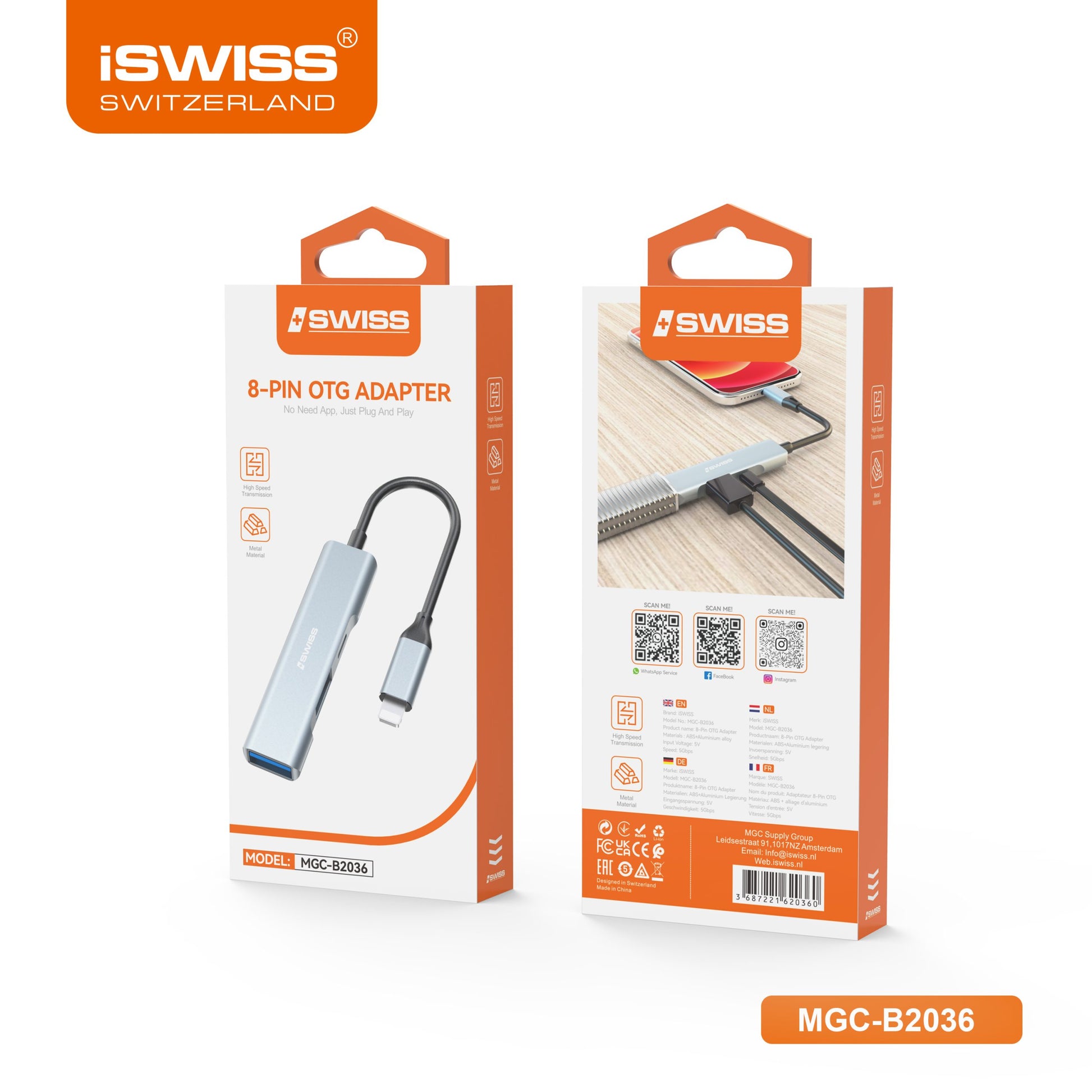 De 8-Pin OTG Adapter van ISWISS is universeel compatibel met iPhones en iPads met een 8-Pin poort, waardoor je een breed scala aan USB-apparaten kunt aansluiten.
